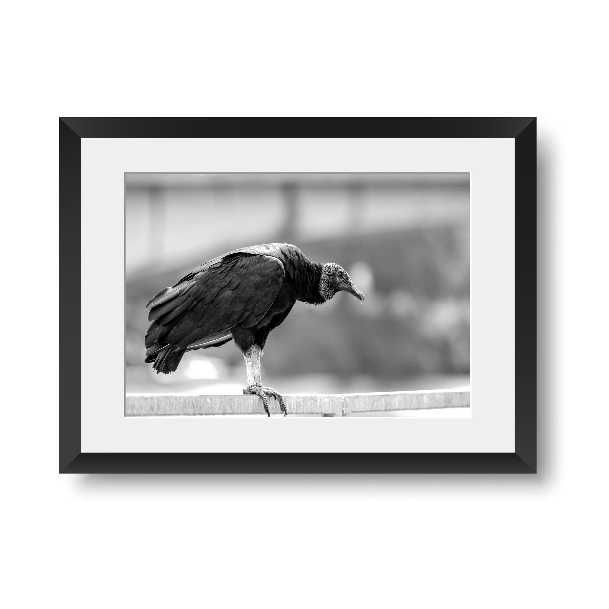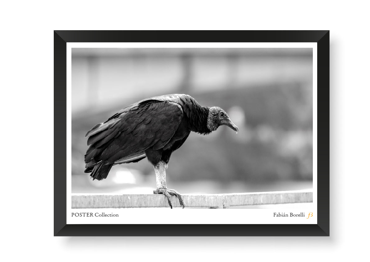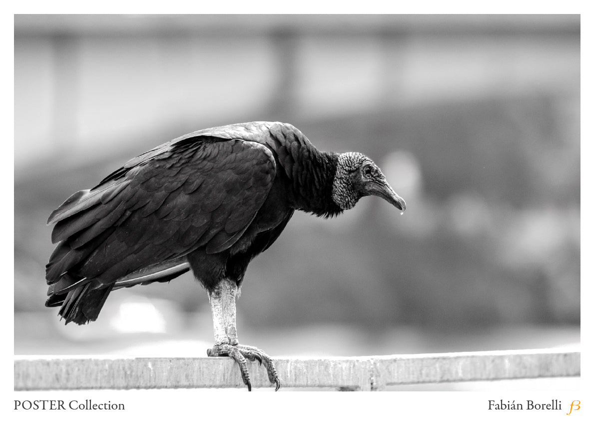 De pie sobre el borde de concreto, un buitre mira hacia la nada.